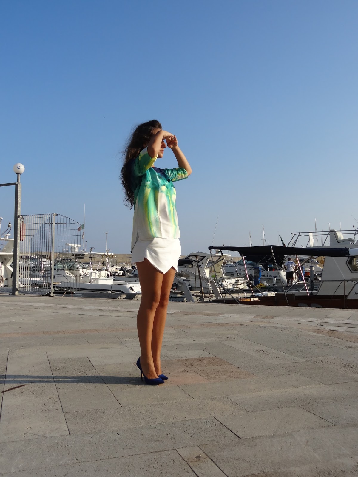 See you soon!L’ultimo sabato di mare per me nel mese di Agosto : passeggiata nel porto e una cena fuori! Ho passato l’intera estate indossando solo infradito costume, shorts niente trucco e occhiali da sole tutto il tempo perciò mi sembrava il caso di far fare un giro ad uno fra i tanti paia di tacchi che ho portato con me 😀