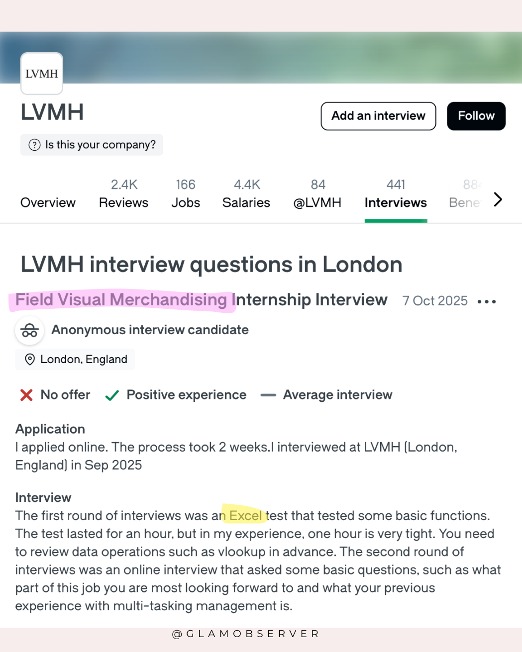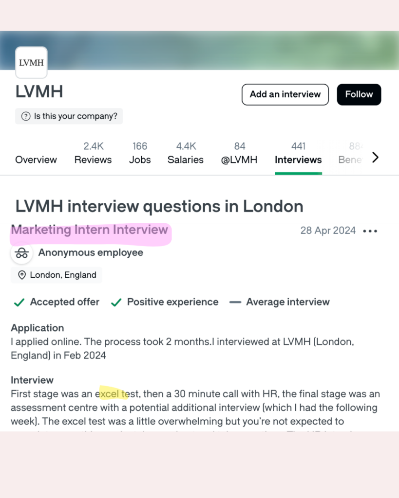 I was tested on Excel during my interview at Alexander McQueen.