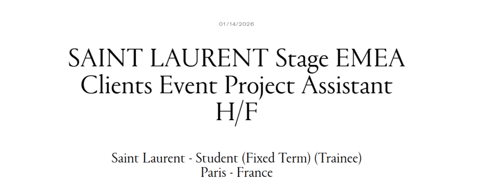 • SAINT LAURENT – Stage Assistant(e) Communication Interne H/F